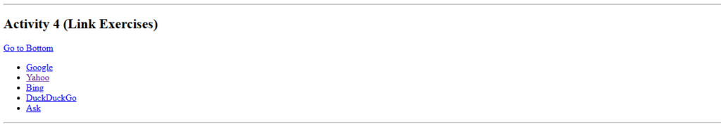 This activity taught me how to create hyperlinks using the <a> tag. I learned how links connect different pages or websites and how they improve navigation within a site.